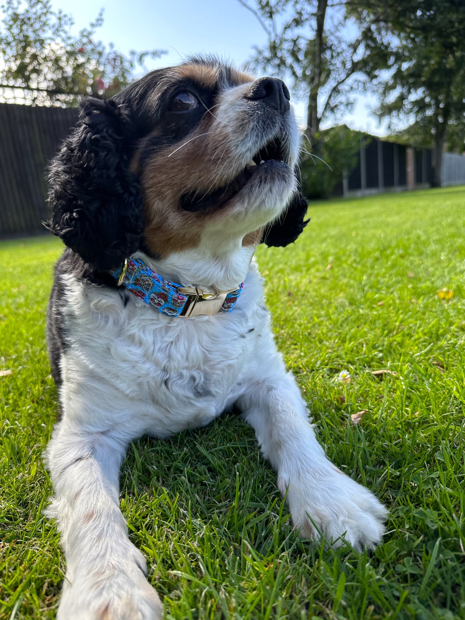 Please measure your dog before ordering. To find the most accurate size, measure around your dog's neck where the collar will sit, ensuring you leave enough room to slide at least two fingers comfortably under the collar. If your dog is between sizes, we recommend choosing the larger size.